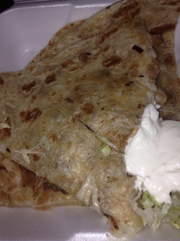 I love this place for A group of people. They serve the Biggest Burritos, Pizza, And Asada Quesadillas. They taste very Good, when your craving something Greasy and Just plain Unhealthy. But overall place is not great atmosphere, They never have someone available in the front to give u anything you need. You have to get their attention which is hard because they are busy making your food. But definitely worth a try!